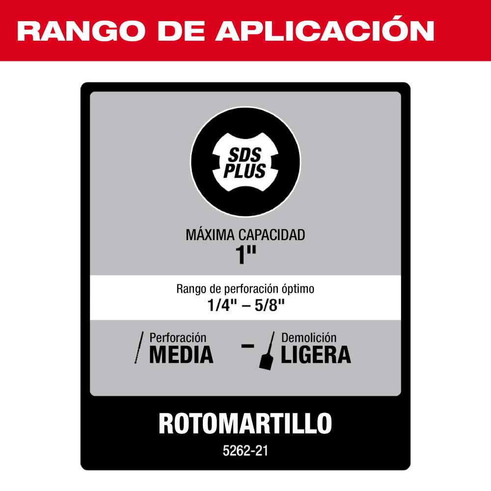 Obtenga una perforación hasta el 40 % más rápida y una vida útil el 15 % más prolongada, incluso en las aplicaciones más resistentes. Diseñado para las aplicaciones más resistentes, el rotomartillo con asa en D SDS-Plus de 1″ dura más tiempo y perfora más rápido que otras herramientas de su clase. Con un potente motor de 8 amperios, ofrece 0-1,620 RPM, 0-5,860 BPM y 2.1 pies-libras de torque. Tendrá velocidad de perforación superior sin sacrificar la potencia necesaria para perforar agujeros más grandes. Con solo 6.1 libras, este rotomartillo es fácil de usar y ayuda a evitar la fatiga del usuario. Un embrague mecánico protege el motor cuando la broca se atasca, y el funcionamiento de tres modalidades ofrece máxima versatilidad. El kit incluye un asa lateral, una varilla de profundidad y una maleta de almacenaje.