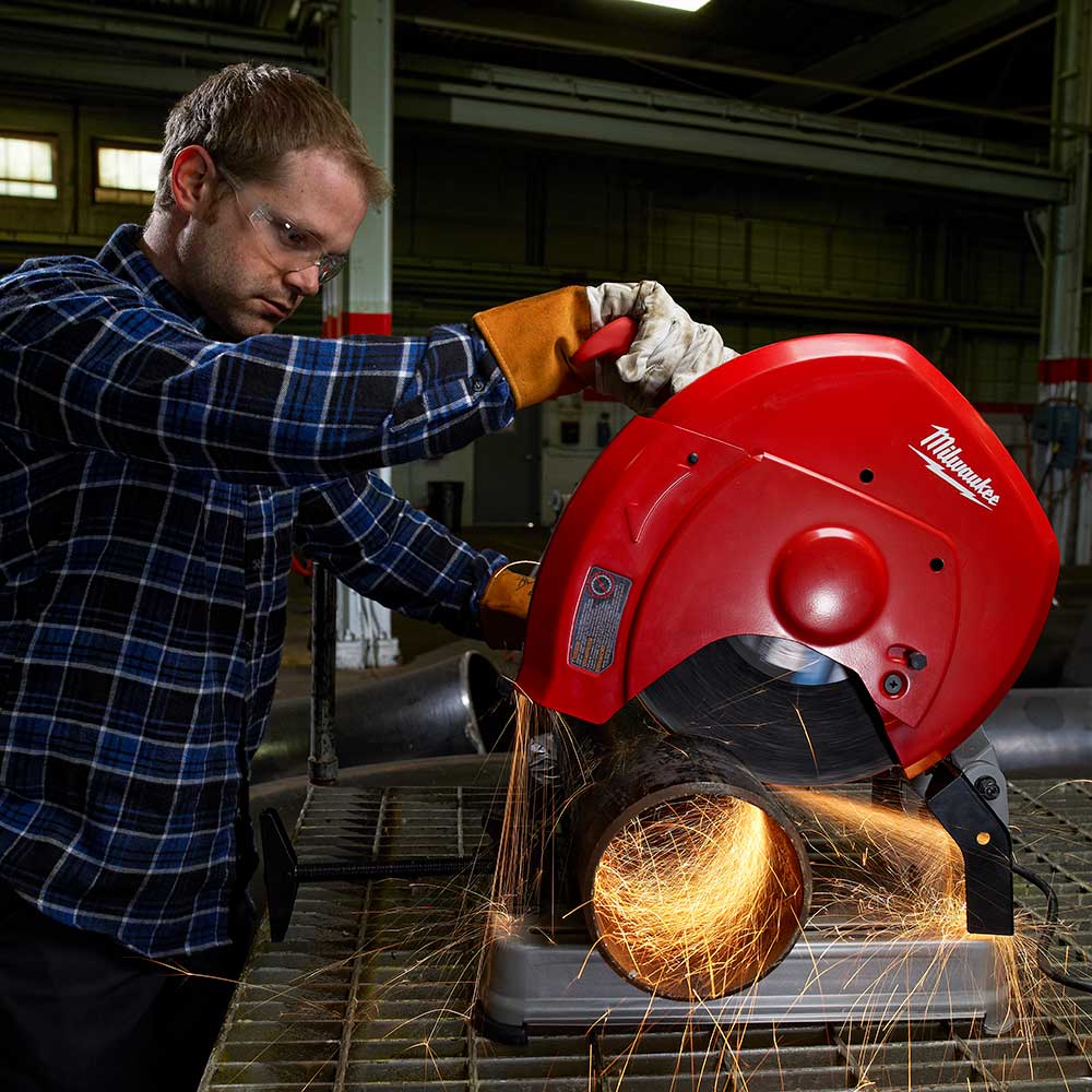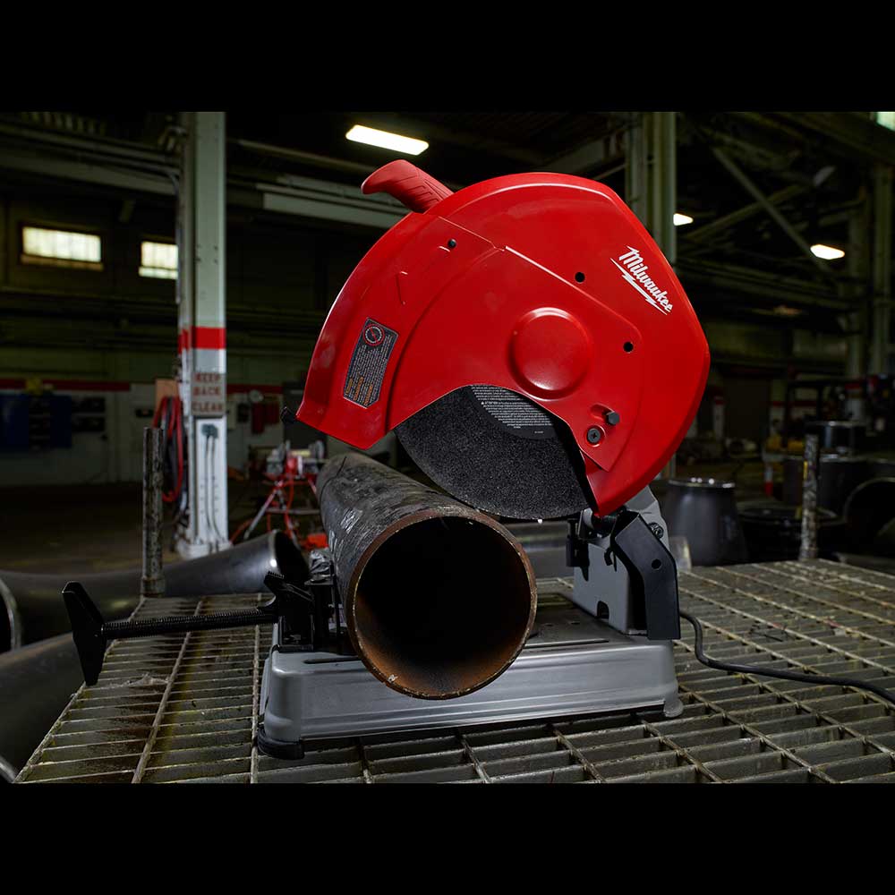 Obtenga rendimiento líder de la industria, durabilidad y facilidad de uso en una máquina de corte versátil que maneja una amplia gama de materiales. Con un potente motor de potencia máxima de 4.0 y 15 amperios y una velocidad de 3900 RPM, esta cortadora de metales abrasivo permite realizar cortes rápidos de yeso en grupos, hierro de ángulo, conductos, tuberías, canales, tubos y barra de refuerzo con una capacidad máxima de hasta 5″. Con una guía ajustable, puede hacer cortes de ingletadora de 45° rápidamente y de manera precisa sin que salgan volando materiales pesados. Liviana y muy durable, esta cortadora de metales de 14″ se desplaza con facilidad a cualquier lugar de trabajo. Un botón de traba de husillo grande le permite hacer cambios rápidos y fáciles de hoja, incluso cuando usa guantes. Una abrazadera de tornillo de banco de rápido ajuste le permite hacer ajustes rápidos cuando corte materiales de diferentes tamaños.