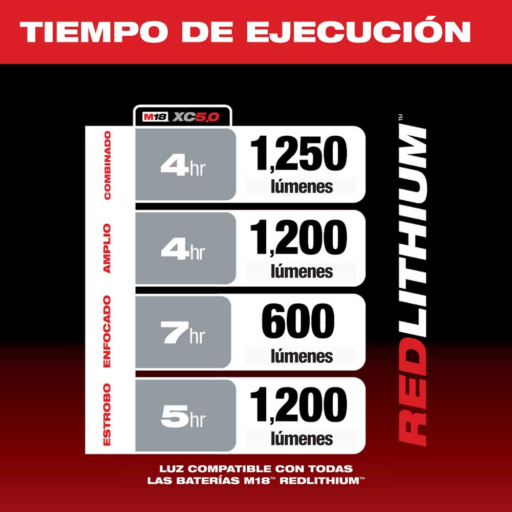 LINTERNA INALÁMBRICA MILWAUKEE M18 DE 18V DE 1,250 LÚMENES