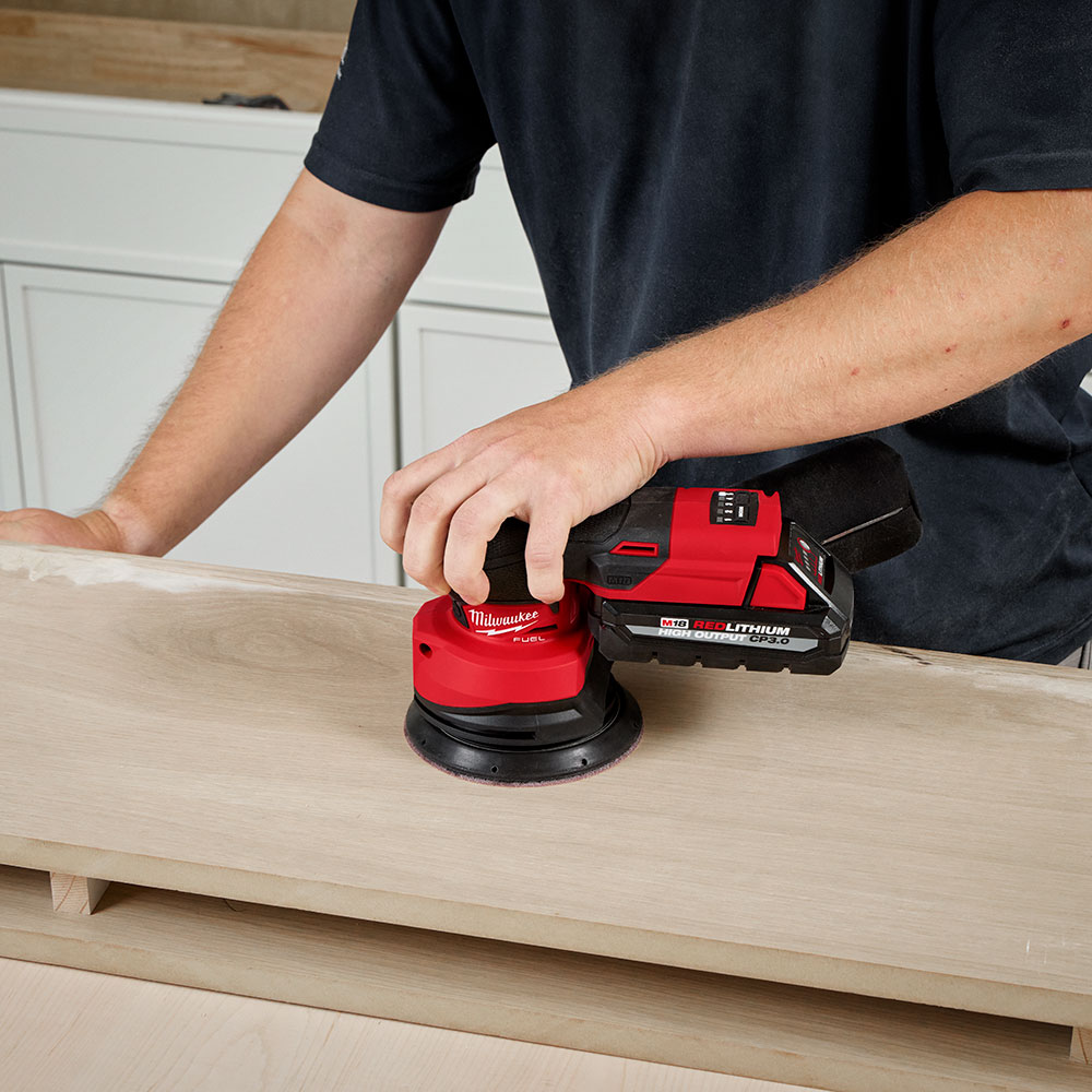 Diseñada para el carpintero profesional, remodelador y contratista general, nuestra lijadora orbital aleatoria M18 FUEL™ de 5″ genera la potencia para eliminar restos pesados para lijar los materiales más difíciles en el lugar, mientras ofrece la vibración inalámbrica más baja con 12K OPM y hasta 95 % de recolección de polvo. El factor de forma ergonómica, el tamaño compacto y la baja vibración ofrecen mayor comodidad para el usuario durante la operación. El motor sin escobillas POWERSTATE™ y la inteligencia REDLINK PLUS™ ofrecen potencia alámbrica para eliminar más rápido a 12,000 OPM para una mayor productividad en el lugar de trabajo. La lijadora cuenta con un movimiento de lijado orbital aleatorio con un diámetro de órbita de 3/32” para ofrecer un acabado de superficie de calidad para tinte limpio y constante, combinado con un control de velocidad de 5 modalidades de 12K a 6K para un mayor control en una gran variedad de materiales. La lijadora, que cuenta con tecnología Bluetooth VACLINK™, ofrece hasta un 95 % de eficacia y control instantáneo de polvo cuando se combina con nuestro extractor de polvo de doble batería M18 FUEL™ PACKOUT™ de 9 galones. Nuestra lijadora orbital aleatoria de 5″ a batería cuenta con nuestra garantía limitada líder en la industria de 5 años para herramientas eléctricas.